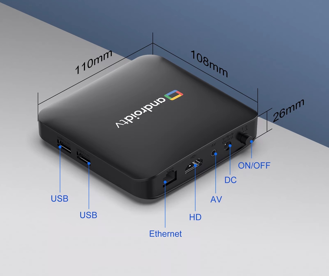 - Złącza: 1 x HDMI 2.0A, 2 x USB, 1 x AV, 1 x RJ45